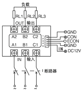 3、过流保护:主回路串接快速熔断器或断路开关,取值为实际负载电流的1.5倍;