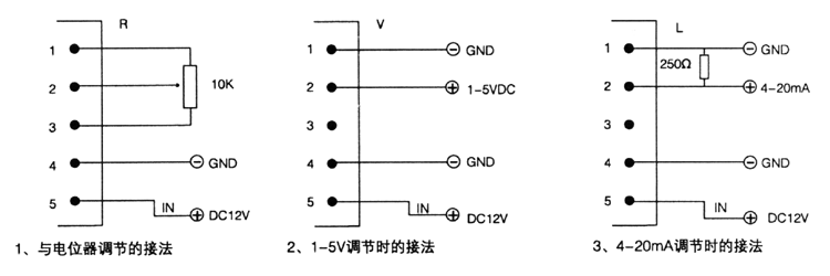 5、输入控制信号: 1-5VDC或4-20mA或10k电位器。