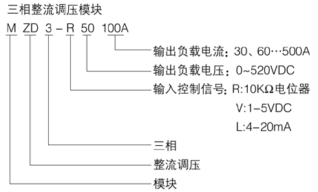 2、三相整流调压:A1/K1、B1/K2、C1/K3端为负载交流电压输入,A2/L1、C2/L3为负载直流输出端(注意正负极向)。